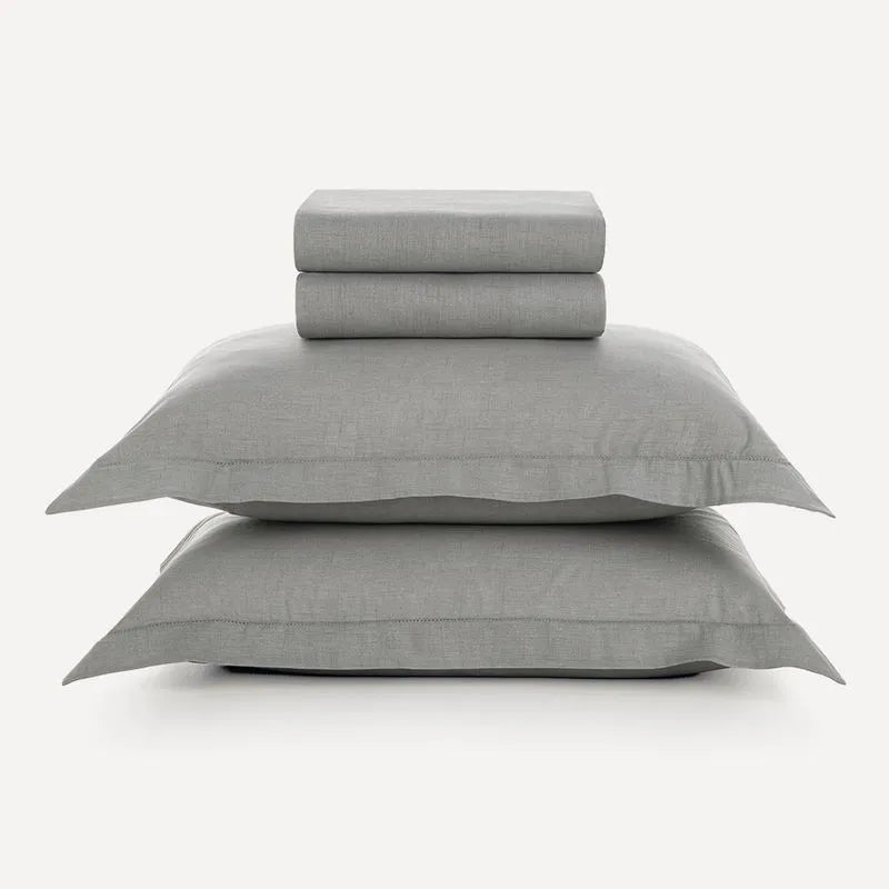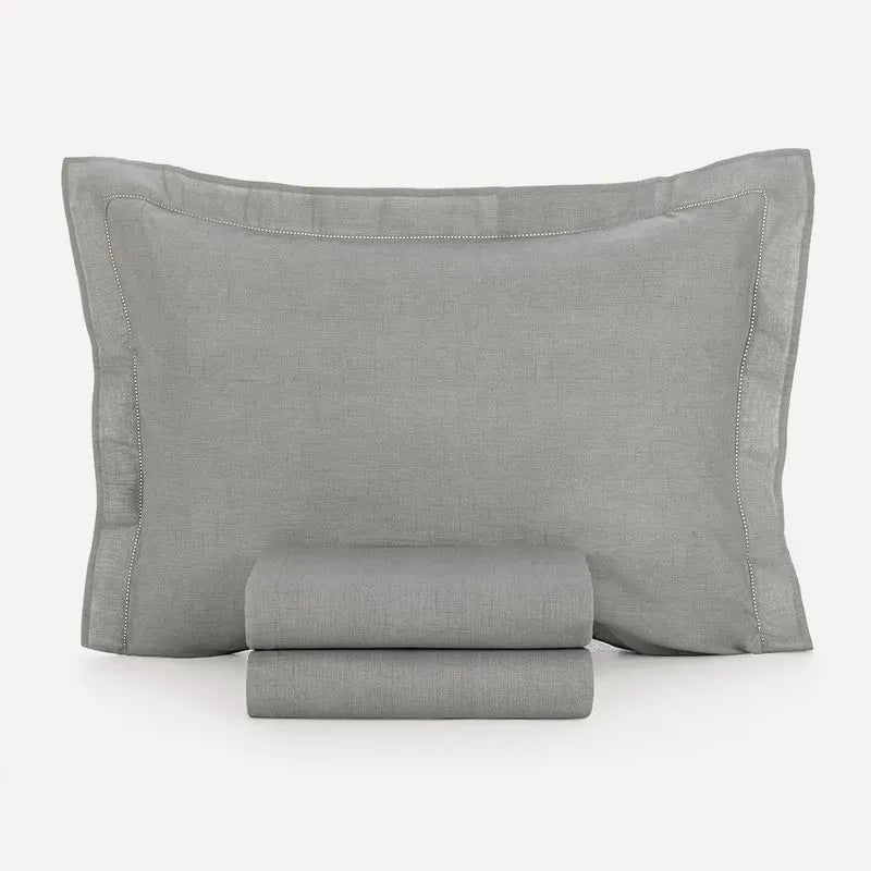 O diferencial fica por conta do acabamento em ponto ajour nas fronhas, que adiciona charme artesanal.