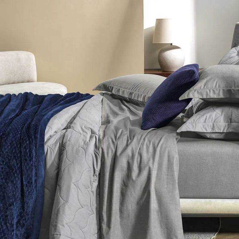Feito com 160 fios de algodão penteado, esse tecido é suave ao toque e proporciona uma sensação de aconchego e frescor.