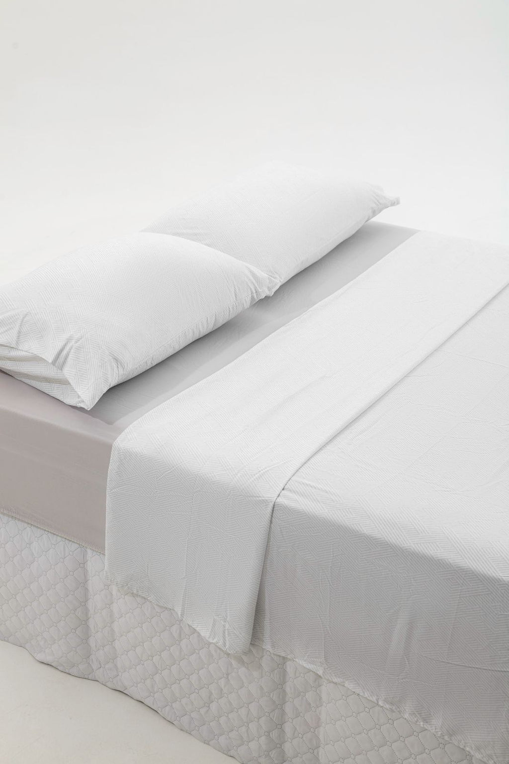 Elegância discreta com um toque moderno. Este jogo de cama é a prova de que o branco pode ser tudo, menos sem graça. A estampa geométrica em relevo visual traz elegância e sofisticação em um design clean e atemporal. Ideal para quem ama o estilo hotelaria ou deseja um quarto minimalista, mas com textura e personalidade.