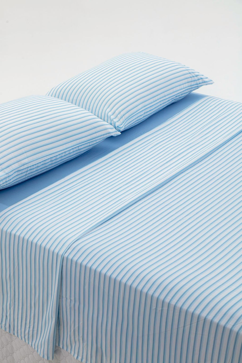O clássico reinventado. Frescor, elegância e conforto definem esse jogo de cama listrado da Basicasa. Com tons suaves de azul e branco, ele traz leveza e um toque de tranquilidade para o seu quarto. Perfeito para quem busca um visual clean e acolhedor sem abrir mão de estilo.