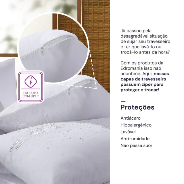 Travesseiro limpo, conservado, livre de toxinas, manchas indesejáveis e com uma aparência de novo por muito mais tempo é o que teremos com o Protetor de Travesseiro Edromania com zíper!