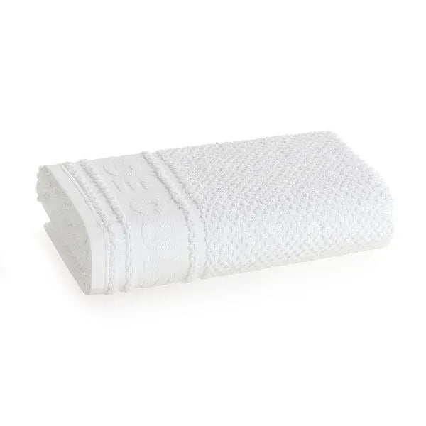 A barra Jacquard adiciona um toque de sofisticação ao design, enquanto o tecido felpudo proporciona uma sensação de conforto e uma absorção de alta qualidade.