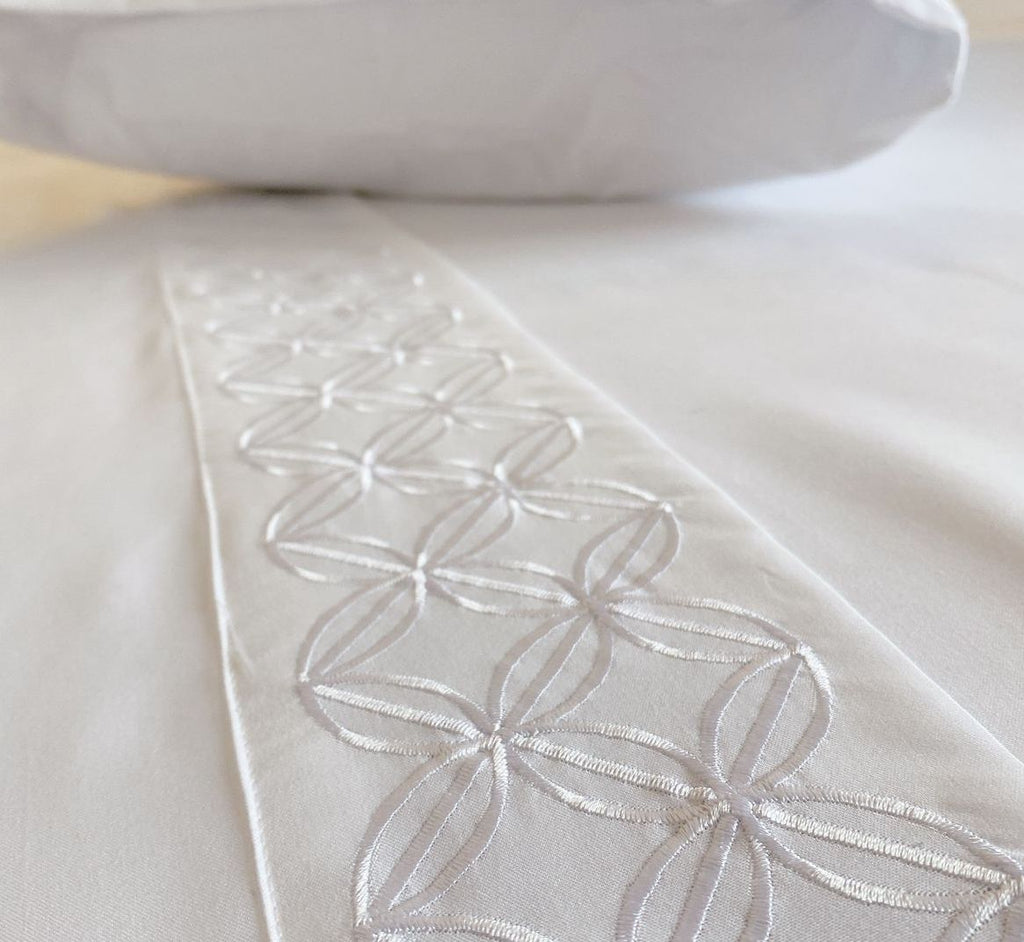 O nosso Jogo de Cama Basicasa Bordado possui uma linda padronagem delicada e sofisticada bordada nas fronhas e na vira do lençol. É um jogo moderno, versátil e de fácil coordenação com as demais peças do seu enxoval.