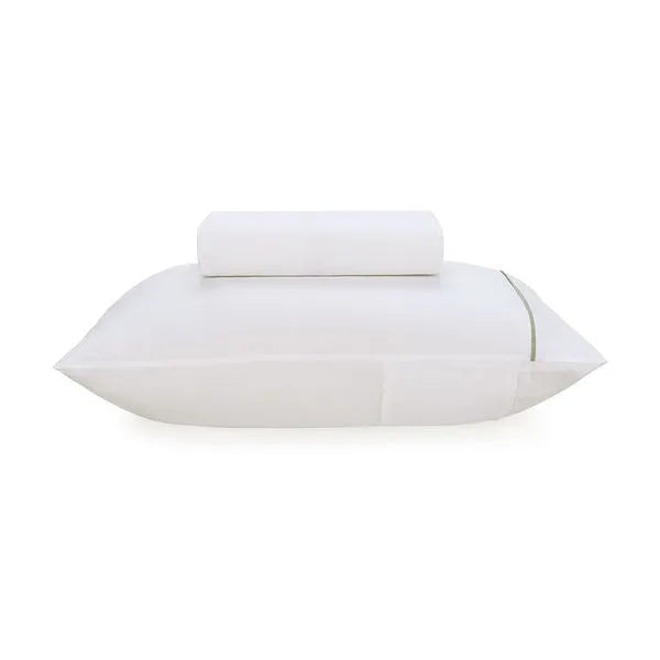 Seu corpo branco liso, traz um toque moderno e minimalista ao quarto e o filete contrastante verde, complementa com um detalhe delicado.