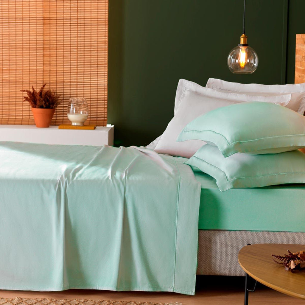 Jogo de Cama Treccenti Percal 300 fios Verde Chá - King