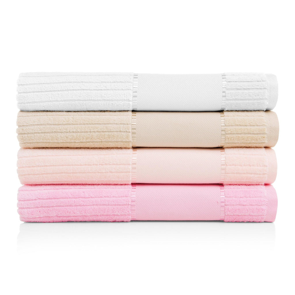 A toalha de banho Stella, é feita em corpo felpudo de tecido 99% algodão e 1% viscose, uma toalha super macia, confortável e de alta absorção. Esse modelo vem com um barrado especial de 11cm para pinturas manuais ou até bordados em máquina, permitindo assim que personalize sua toalha como quiser.